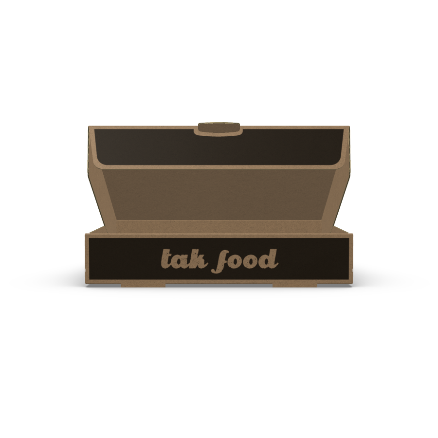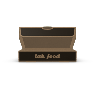 جنس این جعبه از کاغذ ایفلوت بهداشتی تهیه شده که برای تماس مستقیم با مواد غذایی مناسب است و بهخوبی از نشت چربی یا روغن جلوگیری میکند. طراحی یکتکه این بستهبندی، فرآیند بستهبندی را سریعتر و آسانتر میسازد و ظاهر آن حس نظم و حرفهای بودن را منتقل میکند.