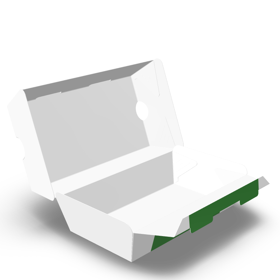 جنس این جعبه از مقوای ایندربرد بهداشتی و ایمن برای تماس مستقیم با مواد غذایی است، بهطوری که بدون نیاز به هیچگونه لایه جداگانه، قابلیت استفاده مستقیم را دارد. ساختار صدفی آن باعث میشود غذا درون بستهبندی بهخوبی حفظ شده، دمای آن ماندگار بماند و حملونقل بدون نشتی انجام شود. همچنین هنگام باز شدن، فضای مناسبی برای سرو آسان غذا در اختیار مصرفکننده قرار میگیرد.