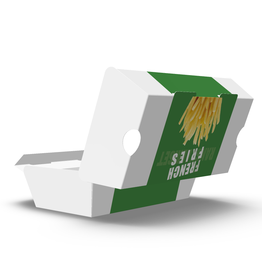 جعبه سیب صدفی یکی از بستهبندیهای زیبا، کاربردی و بهداشتی است که بهطور ویژه برای سرو و حمل سیبزمینی سرخکرده، پیشغذاها و اسنکهای فستفودی طراحی شده است. این جعبه با طراحی خاص صدفی شکل، نهتنها ظاهری جذاب و متمایز دارد، بلکه کاربری آسان و تجربه مصرف لذتبخشی را نیز فراهم میکند.